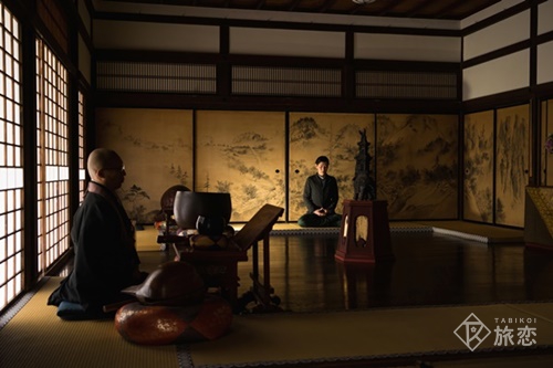 ぐっすりと眠った翌日、早起きして大徳寺の塔頭「瑞峯院」で行われる「朝のお勤め」に参加しました。瑞峯院は、1535年(天文4年)に創建され、キリシタン大名・大友宗麟の菩提寺として知られています。ご住職と一緒に読経し、その後お抹茶をいただきました。京都のお寺と聞いただけで敷居の高さを感じてしまいましたが、瑞峯院のご住職はとてもやさしく、お抹茶をいただきながら、いろいろお話しをしてくださいます。またいつでも寄ってくださいと言われ、あたたかな気持ちになりました。