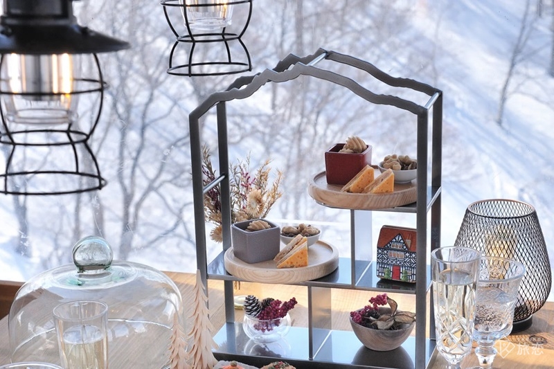 ゴンドラ内で楽しめる食事はチロルのエッセンスを取り入れたフィンガーフード。ヨーロッパの山岳地方の食文化に着想を得た、サラミやリエット、チーズの組み合わせ、スイーツはスイスの伝統菓子エンガディナー(ヌガーをからめたくるみをクッキー生地で包み込んだお菓子)に着想を得たもの。ドリンクには、スパークリングワインや摘果りんご*を絞ったりんごジュースを用意。また、ロープウェイの乗車駅を通過する際に、スタッフが写真撮影を行うサプライズ演出も。