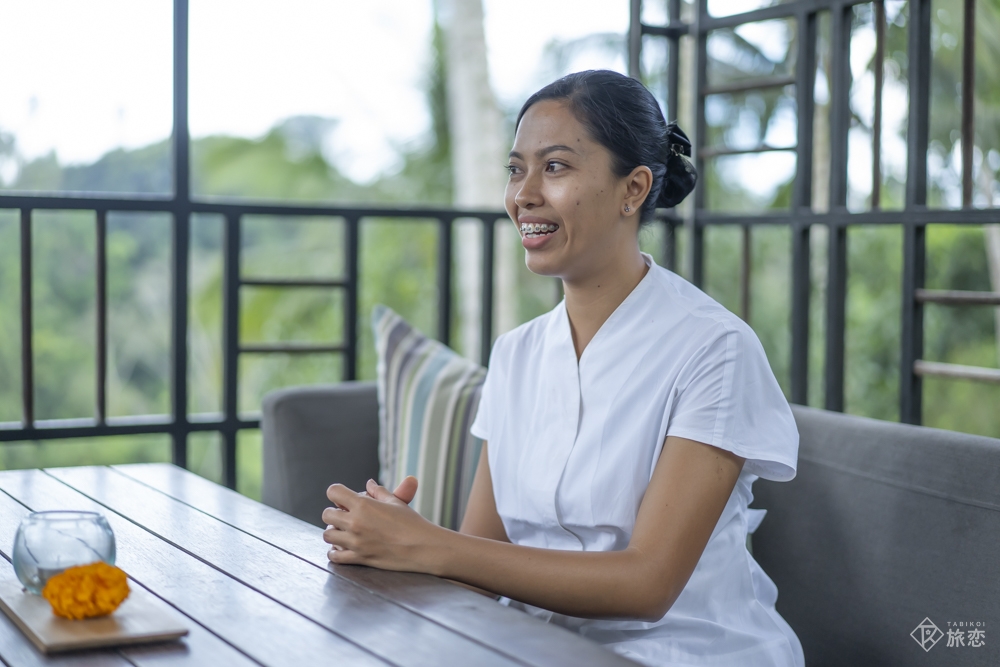 豊かな表情で話すYunikさんはバリ舞踊の素晴らしい踊り手。今回は残念ながらその踊りを拝見することができませんでした。次回はぜひ! Yunikさんをはじめ、スタッフひとりひとりが心を込めてゲストをもてなしている、その想いがやわらかな笑顔から伝わりました。豊かな自然と文化はもちろんですが、穏やかに暮らすバリの人々の笑顔で心を和ませる、そんなバリ旅はいかがでしょう。
