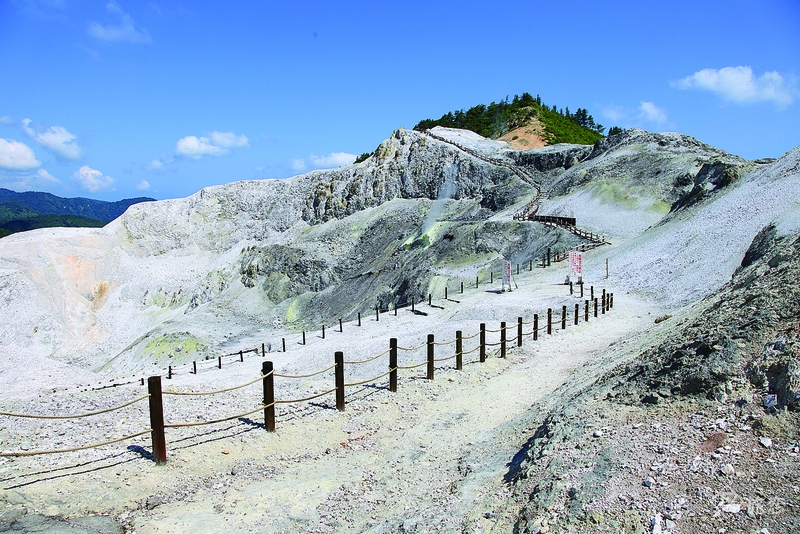 青森県の恐山や富山県の立山と並び「日本三大霊地」にも数えられる川原毛地獄では、灰色の山肌が露出し、ところどころで火山性ガスが噴出するワイルドな景観が広がります。
