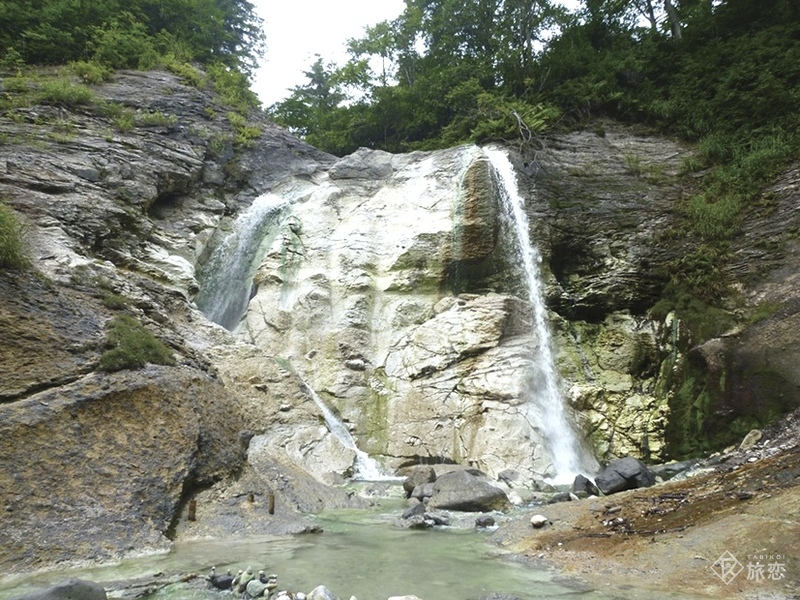 川原毛大湯滝は、夏季のみ水着着用で入浴可能。