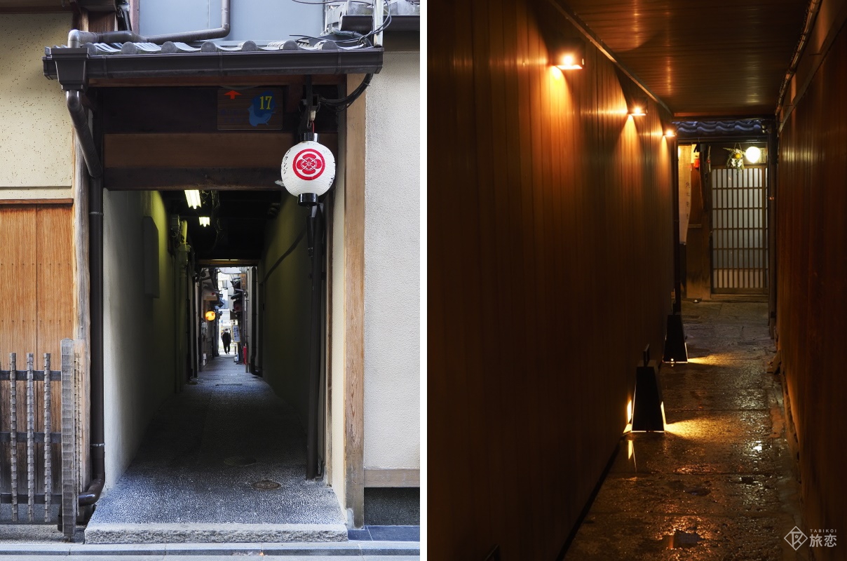 南北に並行して走る木屋町通と先斗町通。木屋町通からの路地は先斗町通まで突き抜けていますが、先斗町通からの路地は行き止まりになっています。つまり、木屋町に面している商家の奥に家はないのですが、先斗町通からの路地の奥には家が2~3戸あり、現在その家屋に人気料理店が何軒もあるのです。