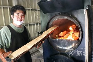 半田さんは京都のご出身。3年半前に西粟倉村へ移住し、自然エネルギー事業にかかわった後、今春より元湯の運営を受け継ぎました。1日5回、ボイラーに薪を入れるのは半田さんの仕事。何気なくほうりこんでいるようですが、「煙の色や出具合を見ながらこれぐらいで大丈夫」と加減をはかっているのだそうです。