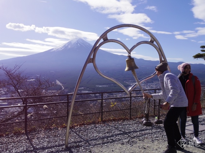 富士山と向かい合うように設置されているハート形の「天上の鐘」は、人気の撮影スポット。富士山のパワーを感じられる場所として、富士山をバックに撮影をしている観光客が多く見られます。