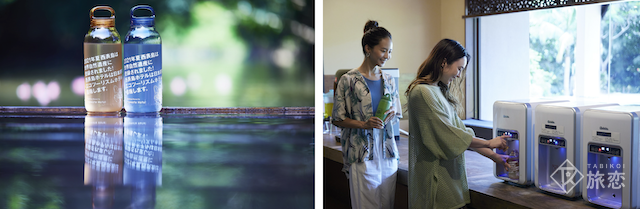 そこで、2021年の世界自然遺産登録を契機に、それまで緩やかに進めてきたプラスチックゴミ対策について、大きな舵を切ります。客室でのペットボトルウォーターサービスの廃止に加え、ショップや自動販売機でのペットボトル飲料の販売を取りやめ、さらに客室のアメニティの設置も完全に廃止。プラスチック製品の提供を極限まで減らしたのです。とはいえそれではゲストに不便が生じます。代わりに館内ゲストラウンジにウォーターサーバー(利用無料)を設置し、ゲストにはマイボトル持参を推奨、お持ちでない方にはレンタルボトルサービスを開始しました。