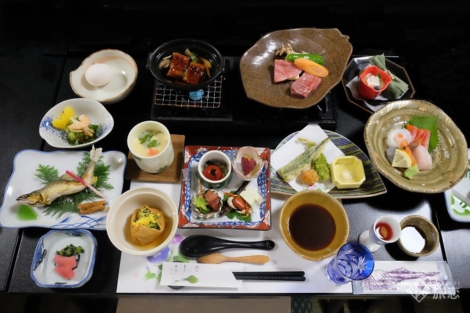夕食は、奥飛騨の食材をふんだんに盛り込んだ会席コース。飛騨牛を使ったコースは、すき焼き付きの「風会席」、陶板焼き付きの「花会席」、「飛騨牛の鉄板焼き」の3種類があります。この日、私がいただいたのは一番人気の「花会席」です。飛騨牛は、しっとりとした肉質や口どけのよい上質な脂のうま味が格別。ふっくらと焼き上げた鮎も肉厚で、日本酒との組み合わせも最高です。地元産の食材などを使った全12品もの滋味深い料理が供され、大満足の夕食でした。また、卵とじにした「漬物のステーキ」、野菜の「朴葉みそ焼き」など数々の郷土料理並ぶ朝食もおいしかったです!