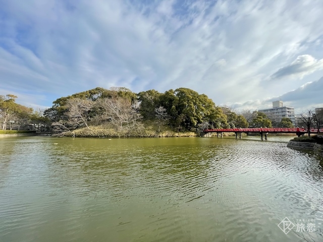 またそれとは別に、河底池については788年に和気清麻呂が、旧大和川の流路を変えるために上町台地をこの場所で開削しようとした跡地とも言われています。古墳の周濠を利用しようとして途中で頓挫したことから、赤い橋は和気橋と名付けられています。この池が社会の教科書にも出てくる和気清麻呂の土木工事の跡でもあると考えると、穏やかな姿も違ったものに見えてきます。